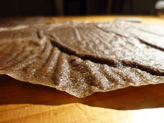 puis étaler sur une plaque, et au moins 12h au déshydrateur...(1h à 60°, puis le reste du temps à 40°)