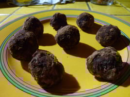 en faire des boules, puis les rouler dans de la poudre de cacao cru