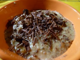 rajouter un carré de chocolat émietté, de la poudre de caroube, et de l'huile de coco (2càS)
