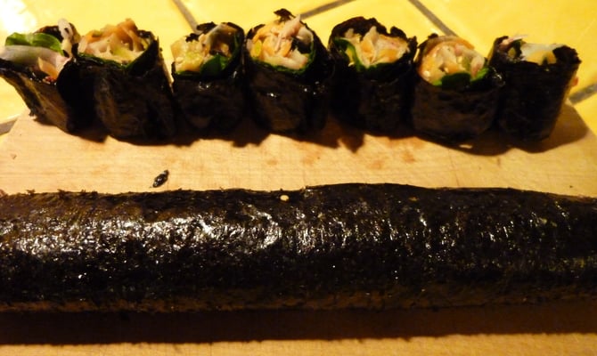 Roulet au feuille d'algue de Nori....hummm....fraicheur et produit de la mer.... dim 20 déc 15